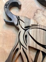 Bring charm and warmth to your home with this handcrafted wooden elephant decor. Made from solid, natural wood and designed with intricate cutout detailing, this rustic elephant silhouette is perfect for nursery themes, boho interiors, or wildlife-inspired spaces. Each piece is unique due to the natural wood grain, making it a thoughtful gift or a one-of-a-kind accent for your shelf, mantel, or wall.